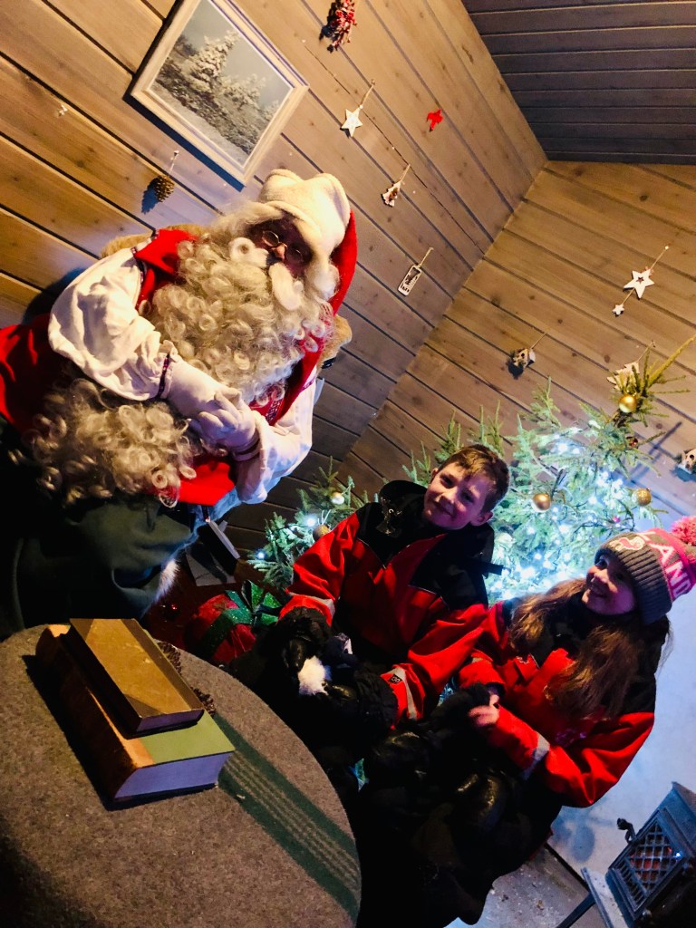 Lapland is one of those trips you never forget and booking with Santa’s Lapland made it completely stress free. We flew from Newcastle to Ivalo, high above the Arctic Circle and the magic started the moment we got on the plane. The crew kept the kids entertained with games and Christmas songs and before we knew it, we were landing in the snow. Outside the airport, reindeer were waiting, along with people in Christmas costumes and we went straight to pick up our hired thermal gear. Everything was organised for us transfers, meals and activities so we could just enjoy it. The only extras to pay for were alcoholic drinks with dinner.