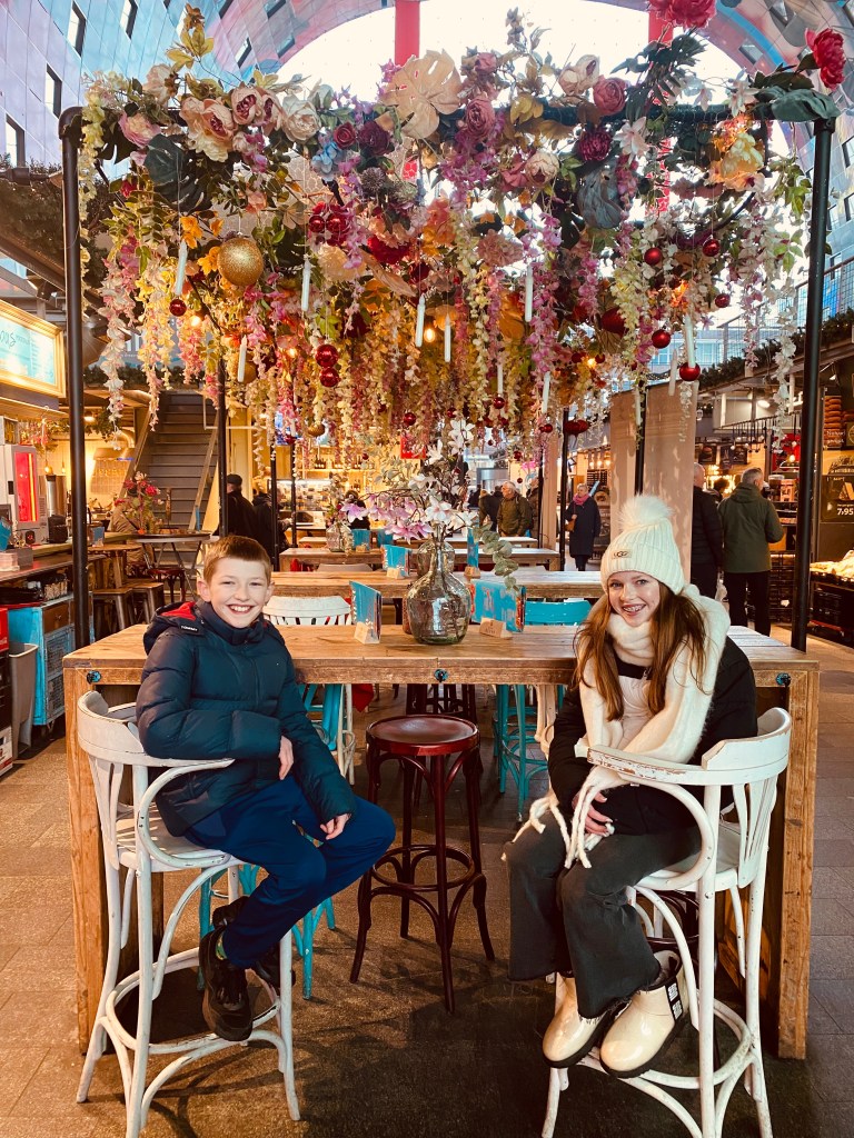 The real highlight for all of us, though was the food market. The Markthal is an incredible modern building shaped like a giant arch, with colourful artwork stretching across its ceiling. Inside, it’s packed with stalls selling everything from fresh fruit and cheese to warm pastries and street food from around the world. We tried a few different things and could easily have spent hours wandering around, tasting as we went. It wasn’t just food either the whole place had a lively buzz to it and our teens loved the mix of smells, sights and snacks.